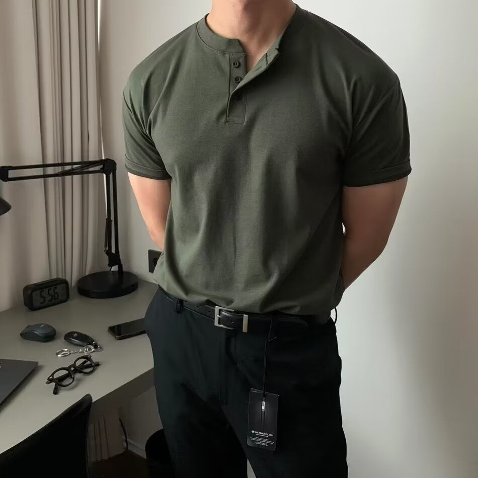 American Henry Collar Cotton T-shirt
