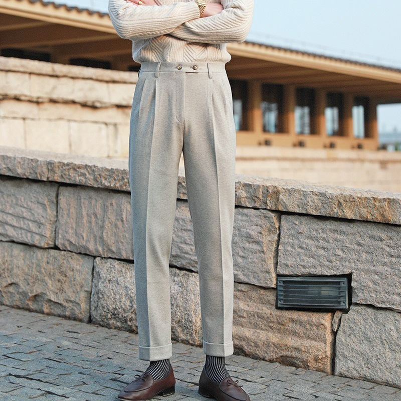 Combining the classic Neapolitan style with a modern touch with its cuffed hem detail, double pleats and double button design, these pants offer comfort and elegance together. Adds a sophisticated look to your outfits with its special cut