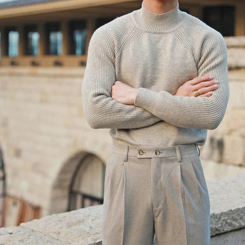 Offering a sophisticated stance with its half turtleneck, this knit sweater adds timeless elegance with its knitted striped texture. The acrylic fabric provides a soft feel and keeps you warm in cold weather. Easily adapting to your classic outfits, this sweater is an ideal choice for both classic and modern styles