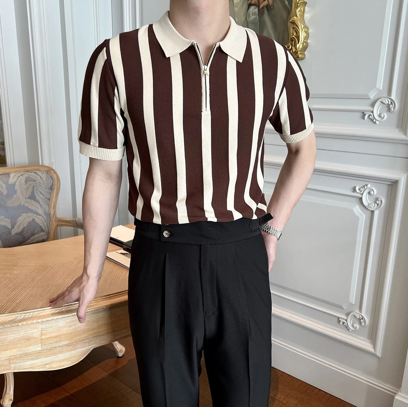 It makes a difference in your style with its modern design and stylish details. The half-zip fastening and slim-fit cut perfectly hugs the body, while the striped pattern offers visual appeal