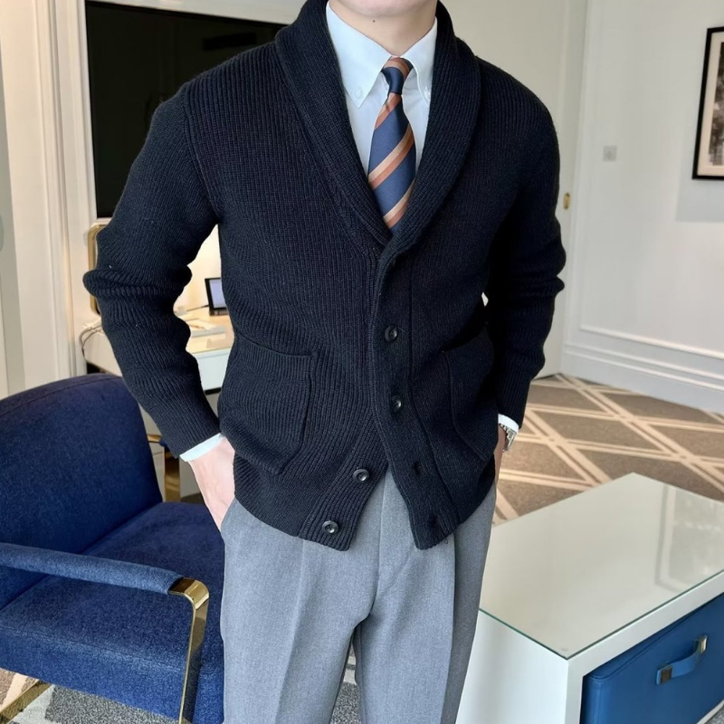 Standing out with its elegant lines and modern striped design, this V-neck knit cardigan offers a stylish and practical choice with its pocket details. Ideal for those who want to add a sophisticated touch to your style