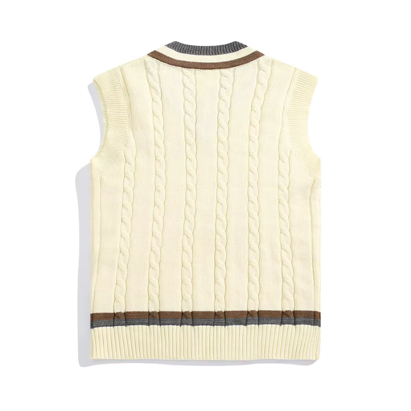 Combining vintage style with an elegant touch, this knit and striped V-neck sweater vest is both comfortable and stylish with its 100% cotton fabric. It will add elegance to every moment with its elegant details and quality texture