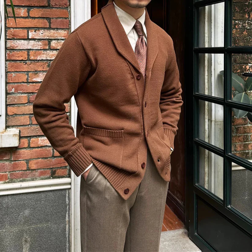 Shawl Collar Cotton Classic Knit Cardigan