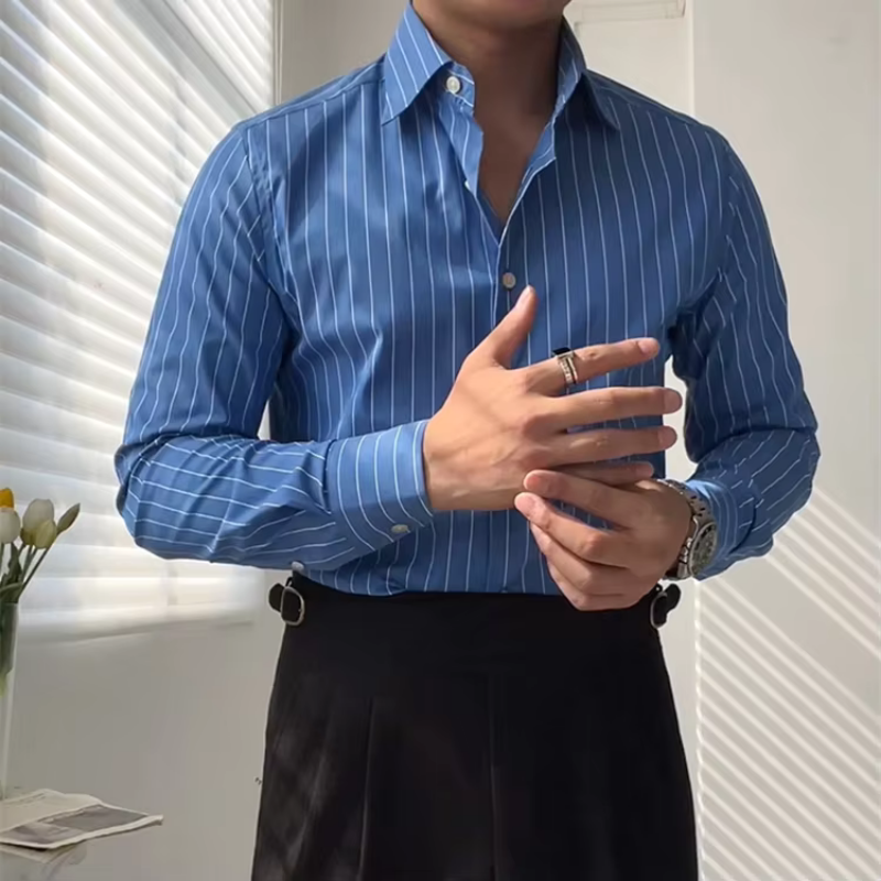 Combining elegance and comfort, this blue and black striped shirt offers timeless style with striped touches. With its striking stripes, it fits perfectly for both daily use and special occasions